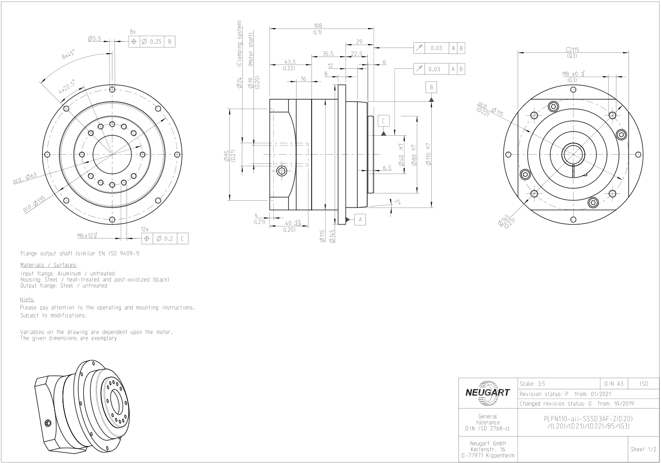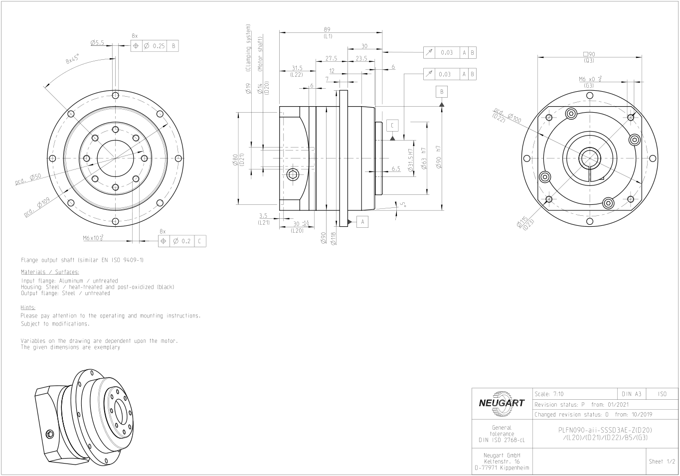 PLFN selection gearbox size structure diagram:PLFN64 gearbox structure and dimension drawing
