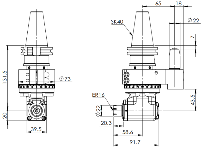 ◎ SK40-ER16 Light Angle Head (AHL Type)