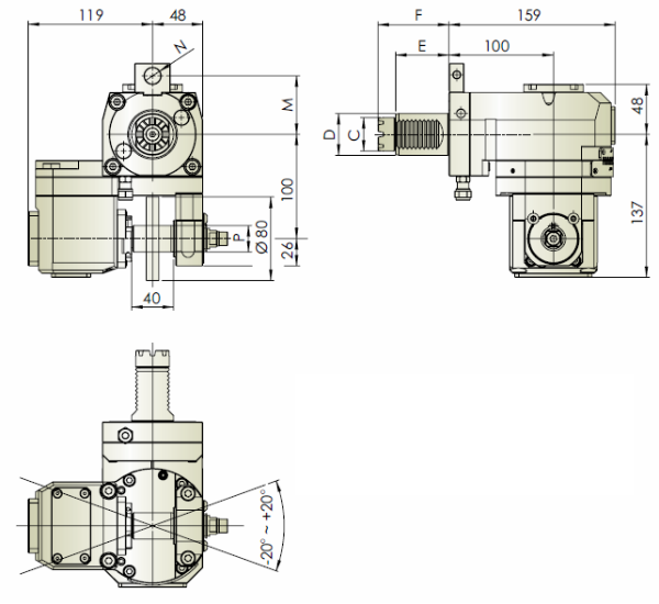 | Model No. | C | D | E | F | M | N | P | N.W. (KG) |